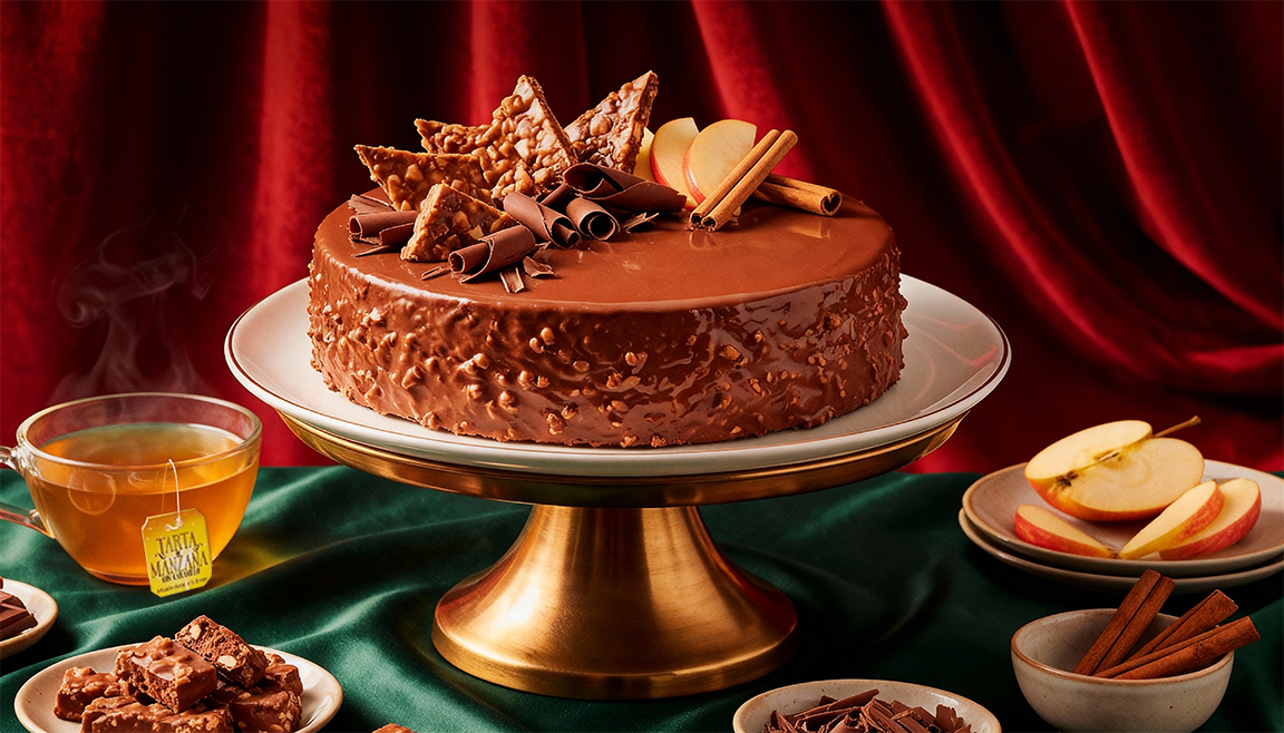 2. Tarta Fría de Turrón Crujiente con Infusión de Manzana y Caramelo